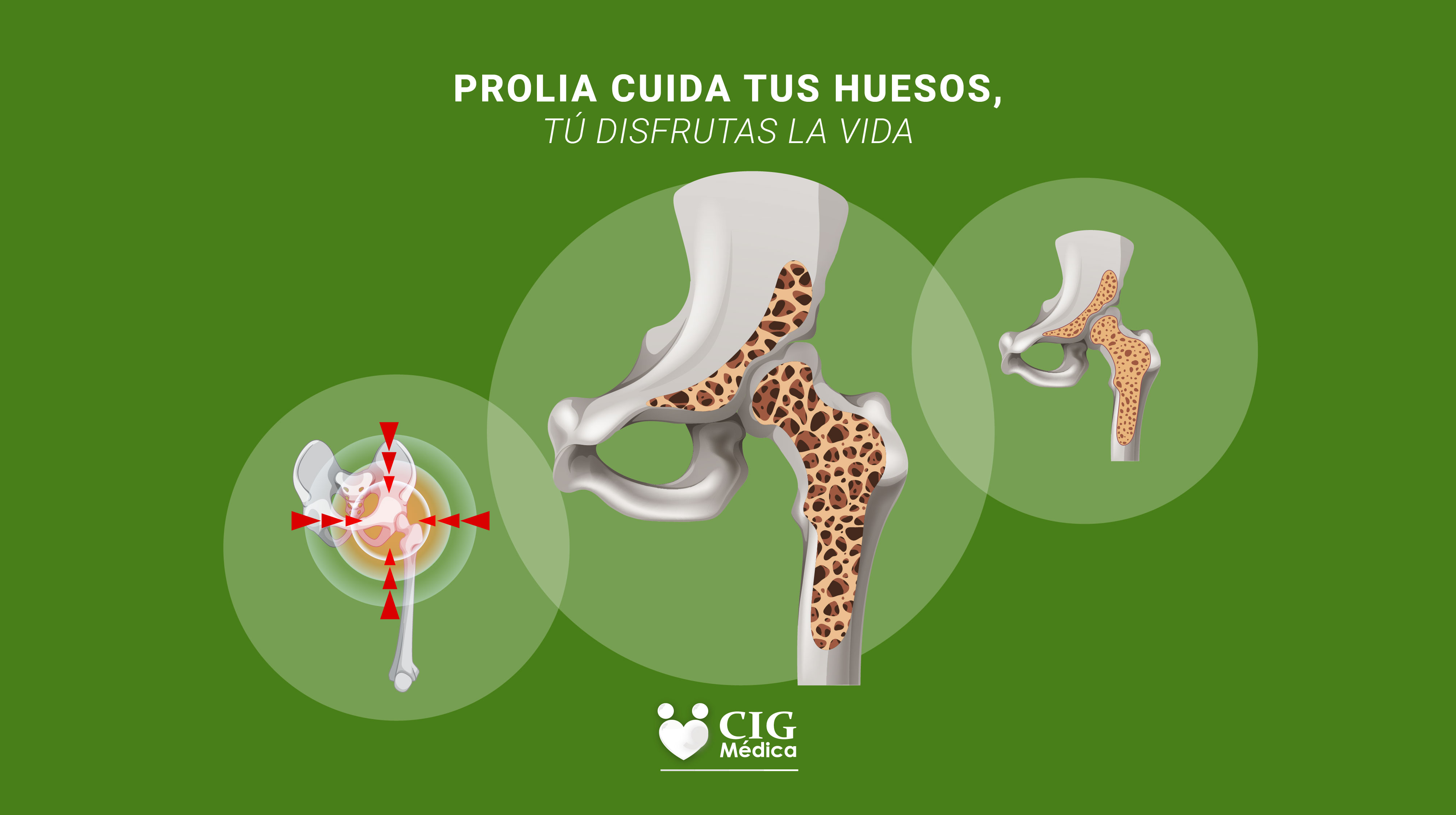 La Prolia es el nombre comercial del medicamento denosumab el cúal se receta para tratar principalmente la osteoporosis, el tratamiento con Prolia refuerza los huesos y reduce las posibilidades de una fractura. Está proteina (anticuerpo monoclonal) se caracteriza por ser un medicamento biológico porque al contener proteínas complejas que se parecen mucho a los anticuerpos que habitualmente están en el cuerpo humano encadena una interferencia en la acción de otra proteína con el objetivo de tratar la pérdida ósea y la osteoporosis.